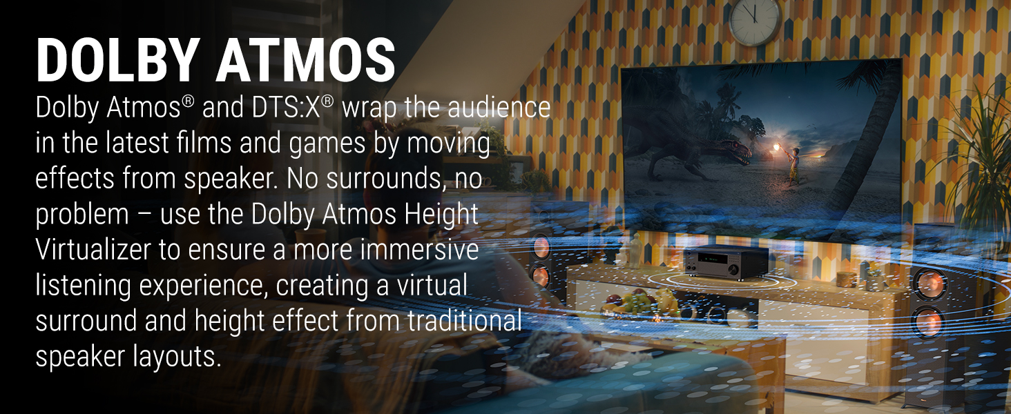 With up to 11.2 channels of processing, DIRAC Live® Room Correction, and the coveted THX Certification, the Onkyo TX-RZ50 AV Receiver is a best-in-class home theater powerhouse. The TX-RZ50 delivers enormous power on-demand to highlight every nuance of the music, movies, and games you love. Groundbreaking DIRAC Live® Room Correction technology offers improved musical staging, clarity, dialog, and deeper bass right out of the box, ensuring that your immersive surround experience is delivered with the highest fidelity. Featuring three HDMI-out options, the TX-RZ50 AV receiver delivers uncompressed HDMI 8K/4K transfer at 40 Gbps, increasing the bandwidth over its predecessors and taking full advantage of the capabilities of Next-Gen gaming consoles. Put through thousands of tests to obtain the coveted THX Certification, this SMART AV Receiver™ delivers a mind-blowing movie, music, and gaming experience to your home.