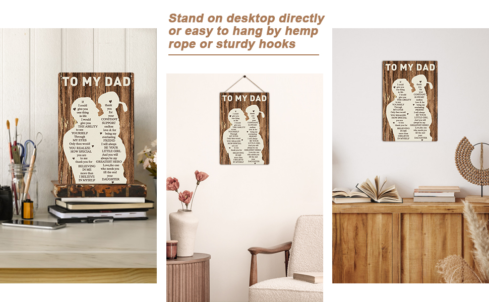 - Four small pre-drilled holes in each corner of this sign, can be mounted on the wall by nails on 4 corners or double-sided tape, or can be put in table, or hang on the wall.
