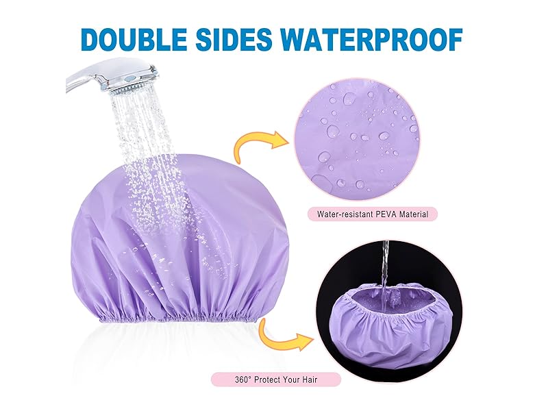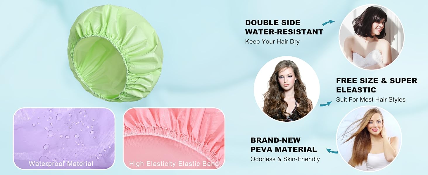 - Double Side Water-Resistant PEVA Layer - Effectively Keep Your Hair From Getting Wet During Showers Or Baths.