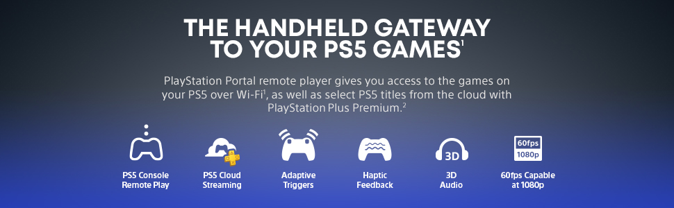 Take hold of a sleek new gateway to your PS5 games with the PlayStation Portal Midnight Black remote player. Feel the Power of PlayStation® in the Palm of Your Hand. Play your PS5 console over Wi-Fi with console quality controls using PlayStation Portal Remote Player. Experience the incredible immersion of DualSense wireless controller features like haptic feedback and adaptive triggers in supported games.**** Put your game collection on PS5 in the palm of your hand— PlayStation Portal Remote Player can play compatible games you have installed on your console** without needing to play on a TV.