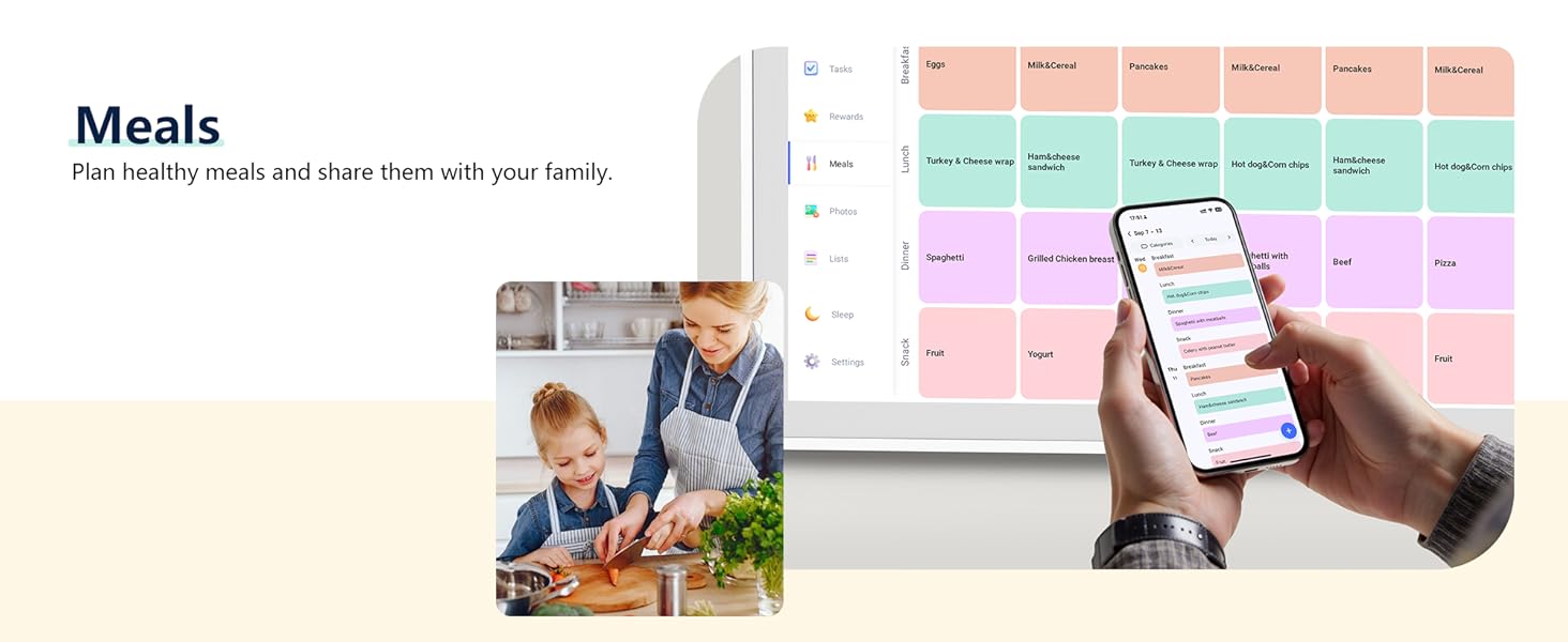 Yes, you can use eCalendar app to upload photos from the shared albums to your device. Once uploaded, the device will display the corresponding photos.
